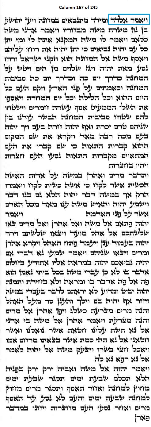 Column 167 of the Torah Scroll begins with the following distinct Line 1 Keywords; this is the only column in the entire Scroll that begins with these keywords: