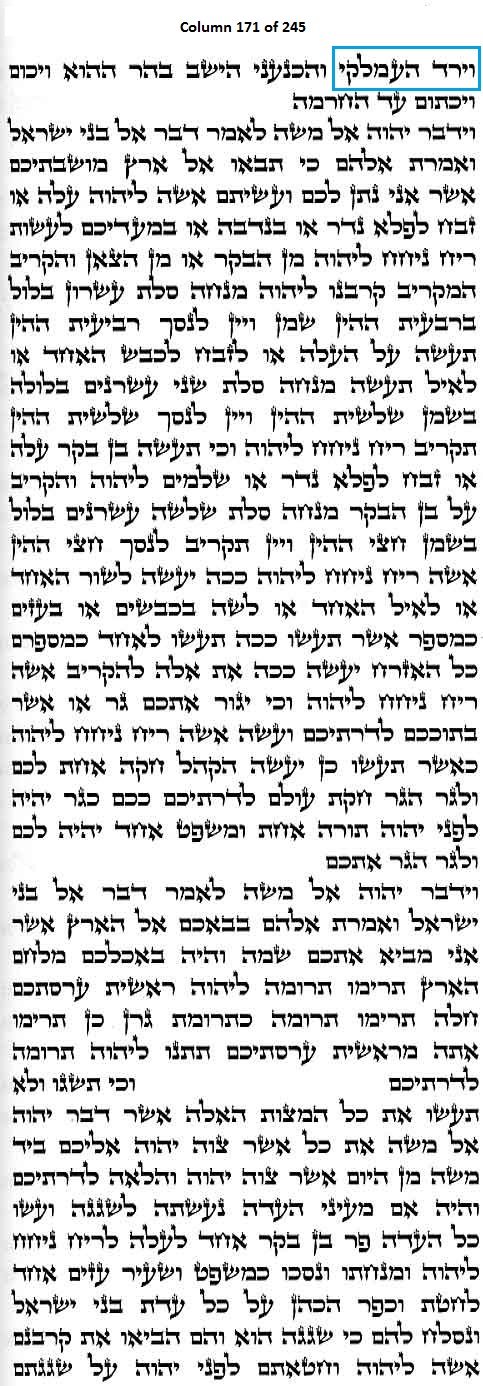 Column 171 of the Torah Scroll begins with the following distinct Line 1 Keywords; this is the only column in the entire Scroll that begins with these keywords: