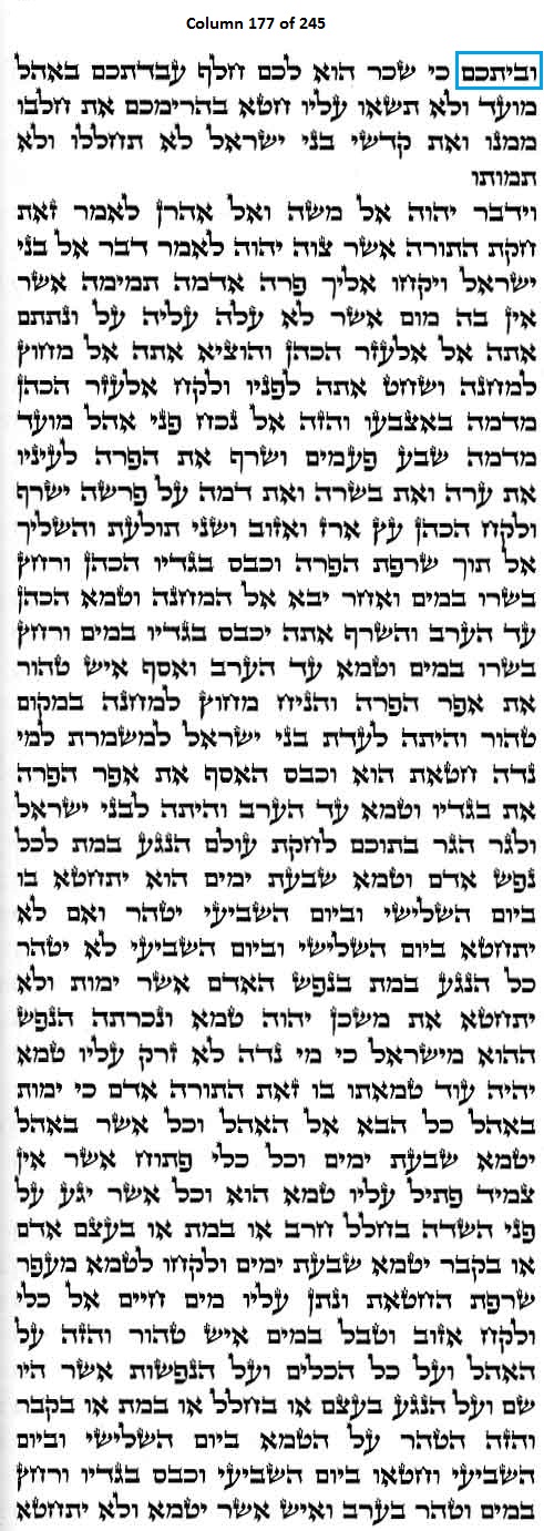 Column 177 of the Torah Scroll begins with the following distinct Line 1 Keyword; this is the only column in the entire Scroll that begins with this keyword: