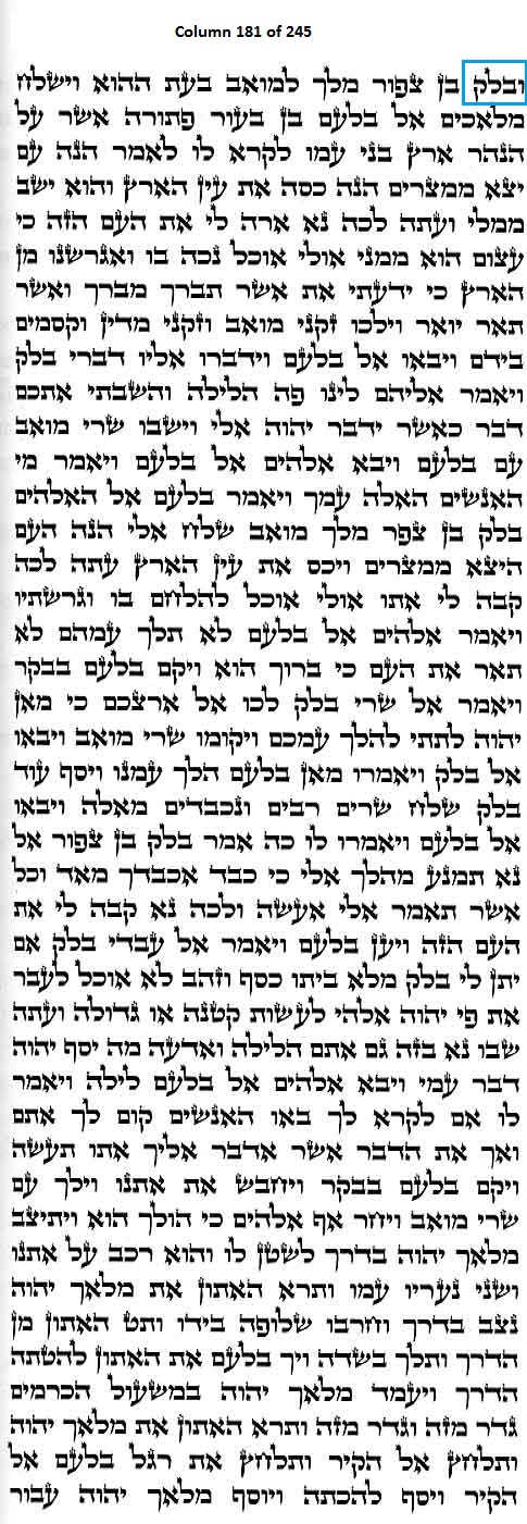 Column 181 of the Torah Scroll begins with the following distinct Line 1 Keyword; this is the only column in the entire Scroll that begins with this keyword: