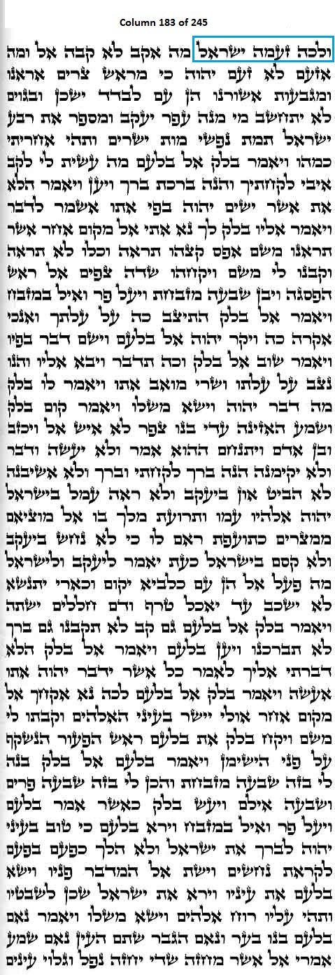 Column 183 of the Torah Scroll begins with the following distinct Line 1 Keywords; this is the only column in the entire Scroll that begins with these keywords: