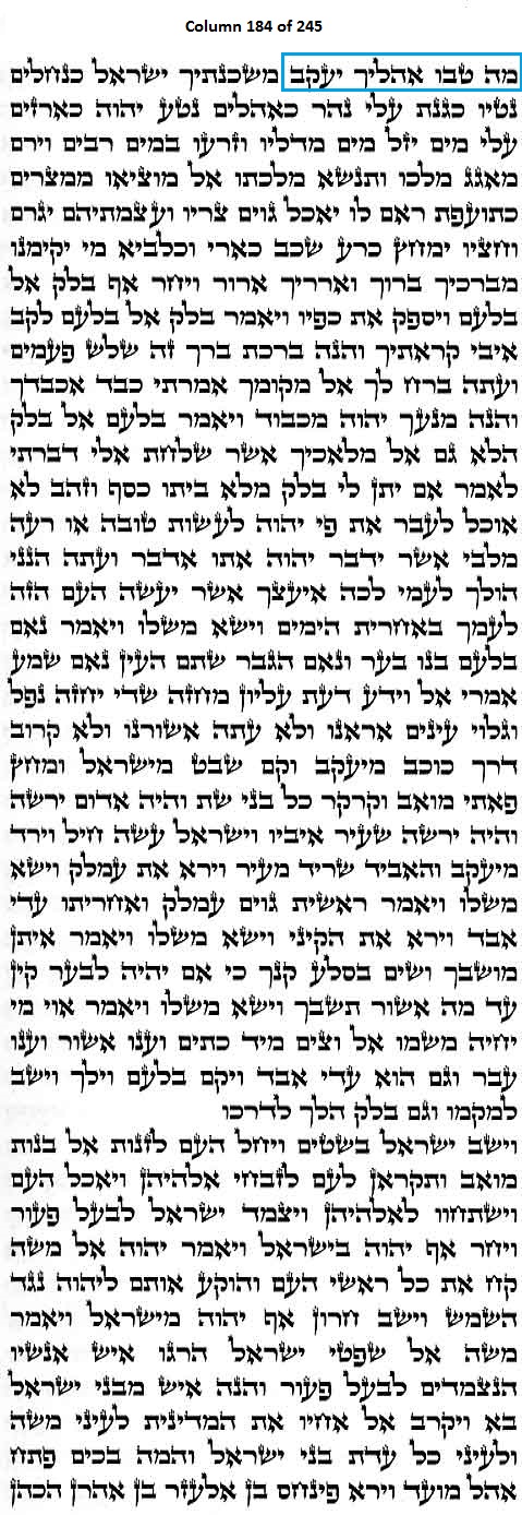 Column 184 of the Torah Scroll begins with the following distinct Line 1 Keywords; this is the only column in the entire Scroll that begins with these keywords: