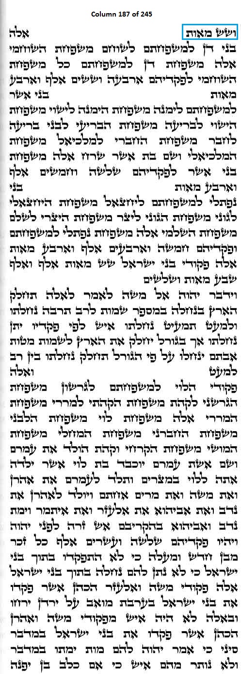 Column 187 of the Torah Scroll begins with the following distinct Line 1 Keywords; this is the only column in the entire Scroll that begins with these keywords: