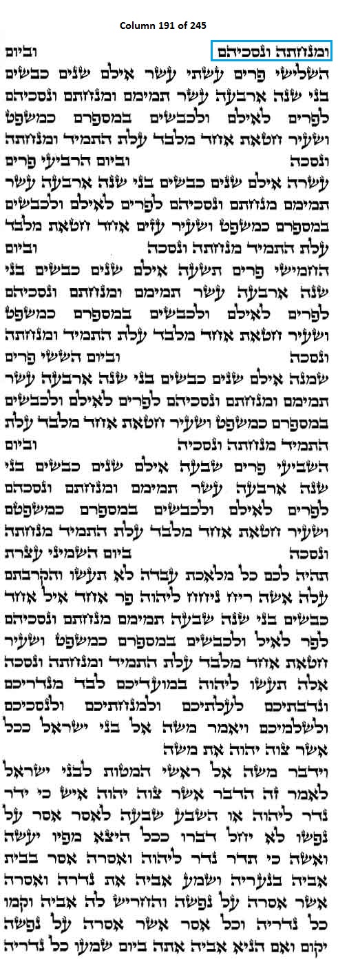 וּמִנחָתָהּ ונִסכֵּיהֶם