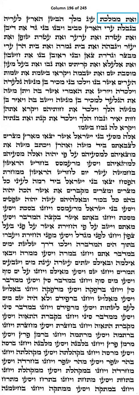 Column 196 of the Torah Scroll begins with the following distinct Line 1 Keywords; this is the only column in the entire Scroll that begins with these keywords: