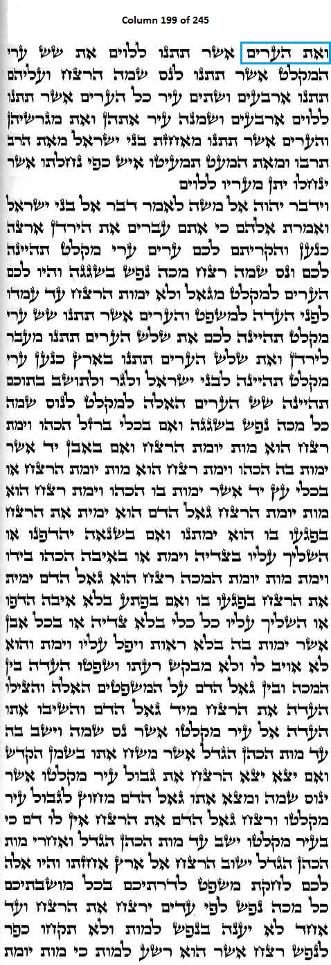Column 199 of the Torah Scroll begins with the following distinct Line 1 Keywords; this is the only column in the entire Scroll that begins with these keywords: