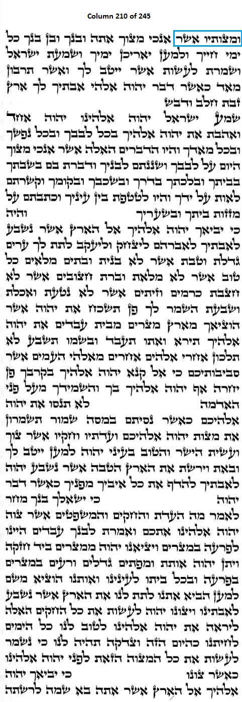 Column 210 of the Torah Scroll begins with the following distinct Line 1 Keywords; this is the only column in the entire Scroll that begins with these keywords: