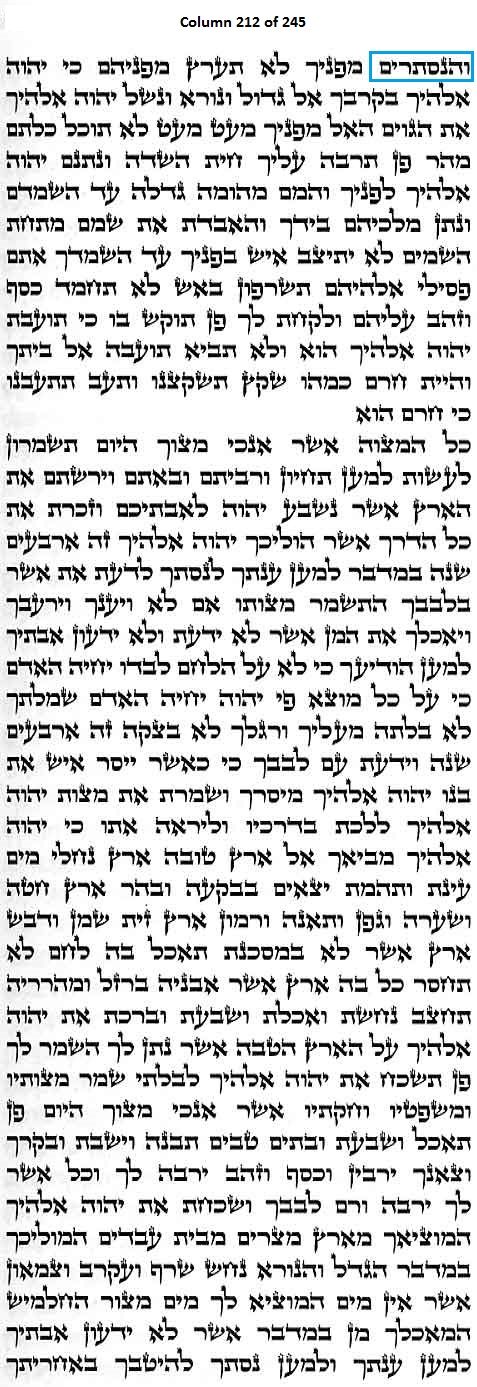 Column 212 of the Torah Scroll begins with the following distinct Line 1 Keyword; this is the only column in the entire Scroll that begins with this keyword: