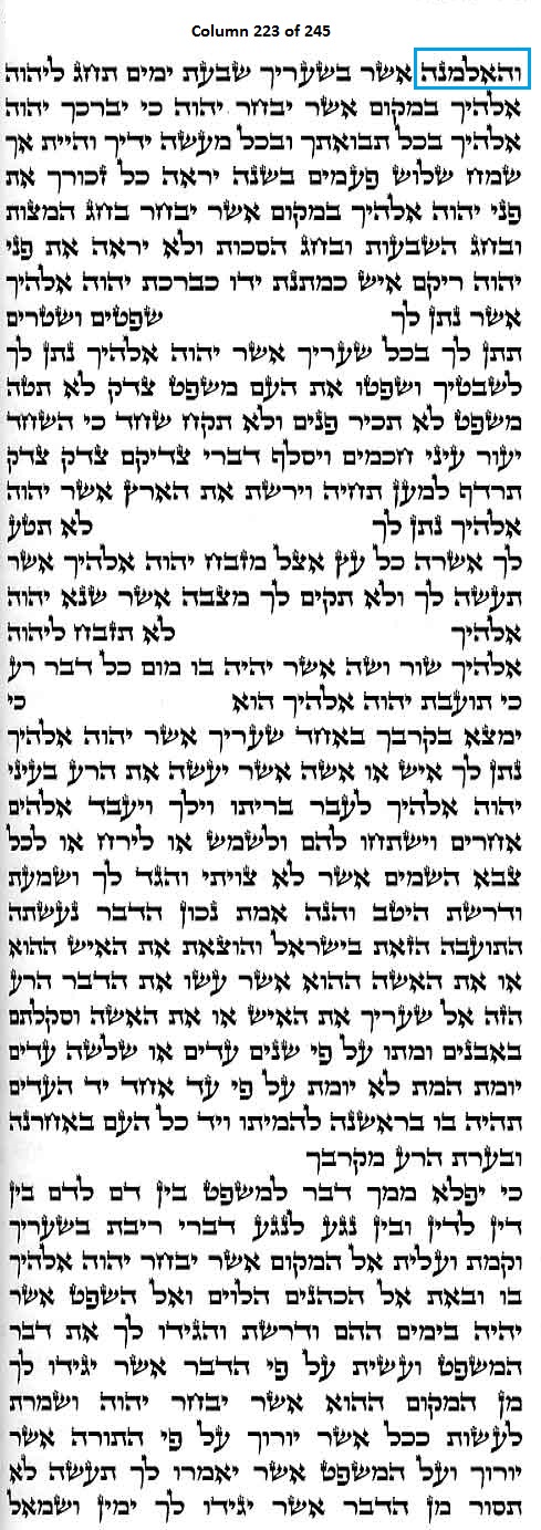 Column 223 of the Torah Scroll begins with the following distinct Line 1 Keyword; this is the only column in the entire Scroll that begins with this keyword: