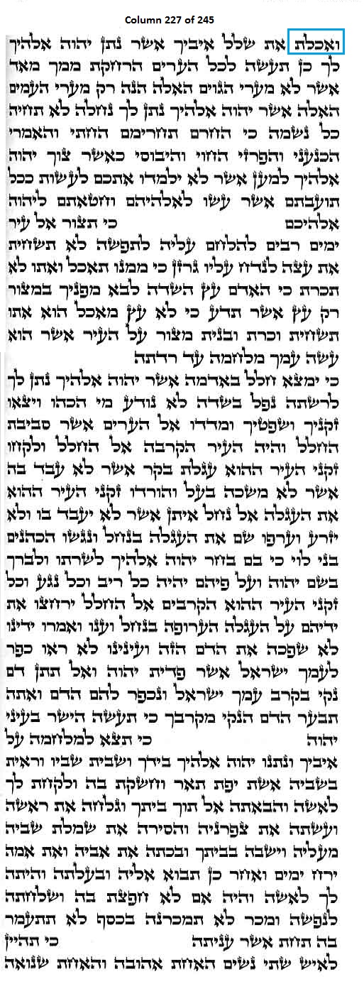 Column 227 of the Torah Scroll begins with the following distinct Line 1 Keyword; this is the only column in the entire Scroll that begins with this keyword: