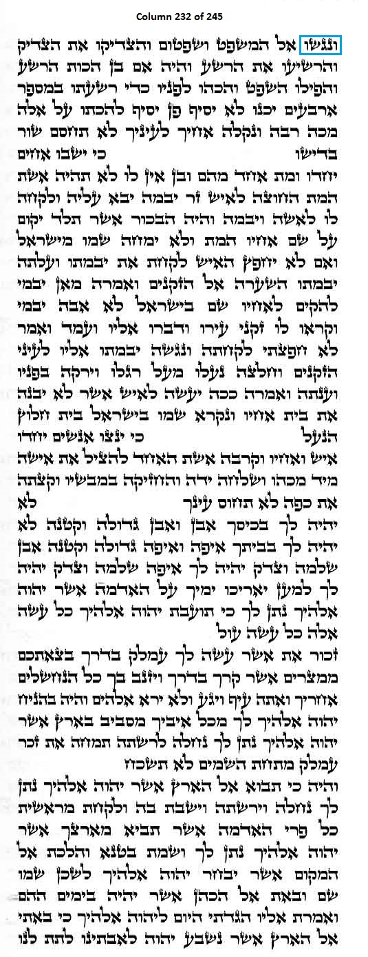 Column 232 of the Torah Scroll begins with the following distinct Line 1 Keyword; this is the only column in the entire Scroll that begins with this keyword: