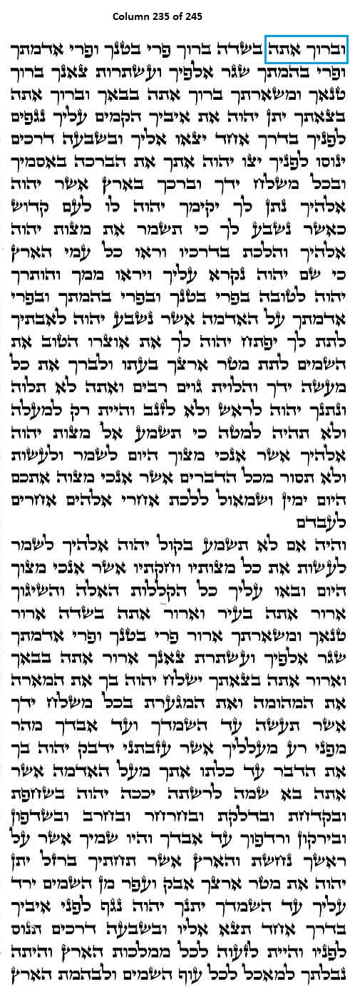 Column 235 of the Torah Scroll begins with the following distinct Line 1 Keywords; this is the only column in the entire Scroll that begins with these keywords: