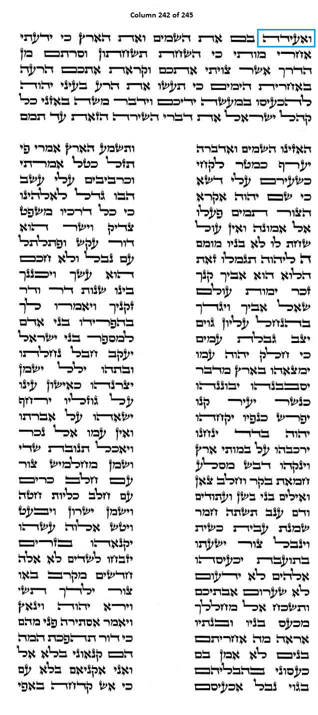 Column 242 of the Torah Scroll begins with the following distinct Line 1 Keyword; this is the only column in the entire Scroll that begins with this keyword:
