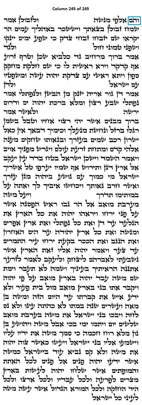 Column 245 of the Torah Scroll begins with the following distinct Line 1 Keyword; this is the only column in the entire Scroll that begins with this keyword: